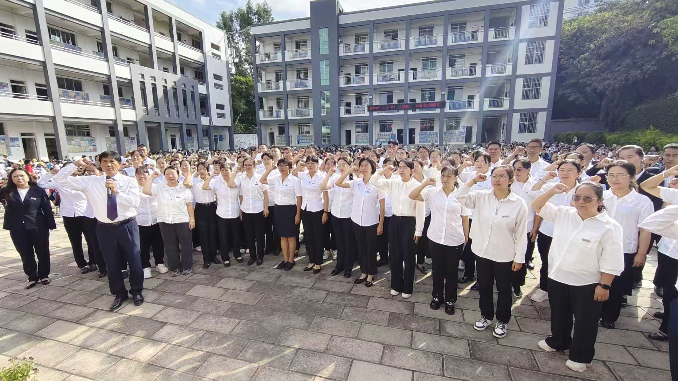 表彰先锋,携手前行。学校还表彰了“学习之星”“文艺之星”“劳动之星”等六类156名“校园之星”,点燃全体学生争先热情。随后,教师庄严宣誓,彰显育人担当;学生稚嫩却坚定宣誓,承诺勤学笃行、不负韶华。最后,学校开展安全教育,围绕交通、校园防护等内容,为新学期筑牢安全防线。