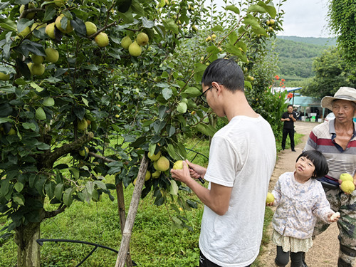 广通镇七屯村委会金家庄村和旱坝厂是“牛角乌”梨的核心种植区,已有上百年的种梨历史。金家庄村48户村民家家与梨树相伴,种植面积少则三五亩,多则几十亩,收入十分可观。“全村一半以上农户年收入超10万元。”村长龙彩贵笑着介绍。 今年80岁的杜兴科是最早一批规模化种植“牛角乌”梨的果农。上世纪60年代,他在房前屋后种下几棵梨树,如今果园已扩展到30亩。“我家的梨根本不愁卖,批发市场、超市都有订单,一年能稳定收入30万元左右。”杜兴科说,如今儿子儿媳接过果园“接力棒”,一家人把这份甜蜜事业经营得红红火火。