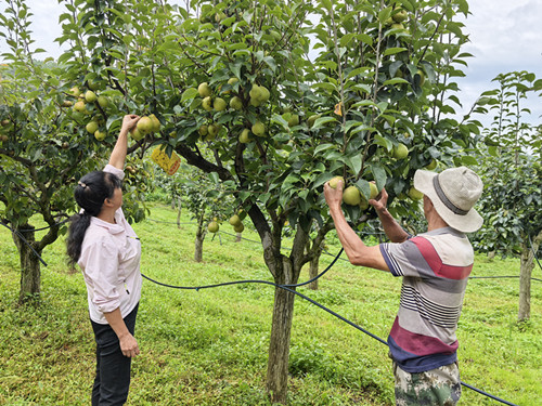 40多岁的杜彪是“牛角乌”梨产业的新生力量。10年前,他尝试种过多个品种,最终还是选择了品质稳定、受市场欢迎的“牛角乌”梨。2020年,他毅然将果园品种全部更换。如今,靠着种梨,他不仅盖起新楼房,还购置了轿车和农用车。今年预计产量突破40吨,收入将超过20万元。“这一季真是大丰收!”杜彪笑得合不拢嘴。