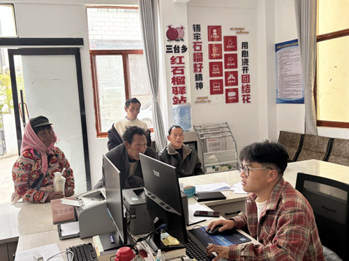 汇聚志愿力量,设立互助友爱“服务岗”。驿站充分发挥党建引领作用,积极整合党员干部、青年团员、返乡大学生等力量,组建“红石榴志愿服务队”,设立常态化志愿服务岗。每逢赶集日和重要节庆活动,志愿者们身着红马甲,活跃在驿站内外,聚焦群众所需所盼,主动提供业务引导、爱心搀扶、信息问询等贴心服务,同步宣讲民族团结政策、传颂民族团结先进典型,营造“各民族像石榴籽一样紧紧抱在一起”的浓厚氛围。此外,驿站还设立帮办代办服务窗口,提供困难群众帮办代办、高龄老人送药上门、重度残疾人送政策上门等暖心服务,畅通便民服务渠道,实现了服务群众“零距离”,让群众“少跑腿,好办事”,进一步提升了各族群众的获得感、幸福感、安全感。