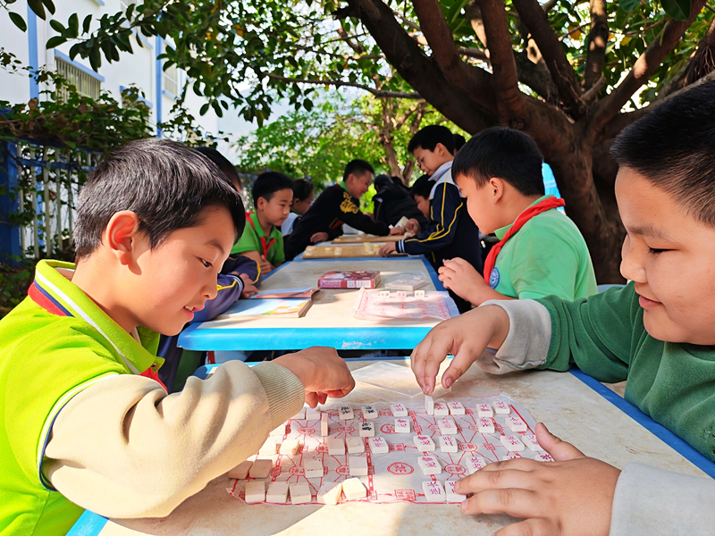 (孩子们在树荫下玩棋类游戏,南华县教体局供图,2026年4月摄)