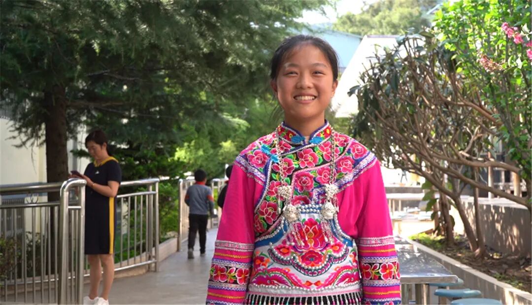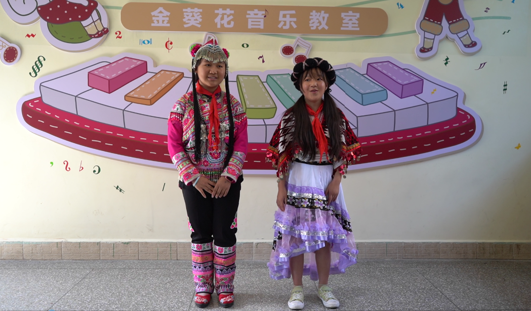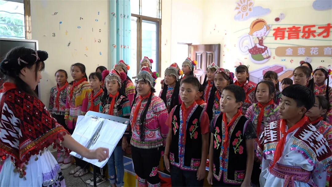 新时代民族网讯(秦黛玥 赵家琦 民族时报记者 陈明海)“噜哩噜,噜哩噜,噜哩噜……长大的小郎彩要好好学习,自信的生命最美丽、最美丽……”一首如天籁般清脆悦耳的童声合唱《苗山乐》从武定县古柏招银希望小学音乐电教室传出,节奏轻快,旋律悠扬。“小郎彩”在苗语里是小女孩的意思,歌词用苗语和汉语诉说着对美好生活的向往,鼓励小郎彩读好了书后大胆“闯出去”,追求幸福美好新生活。