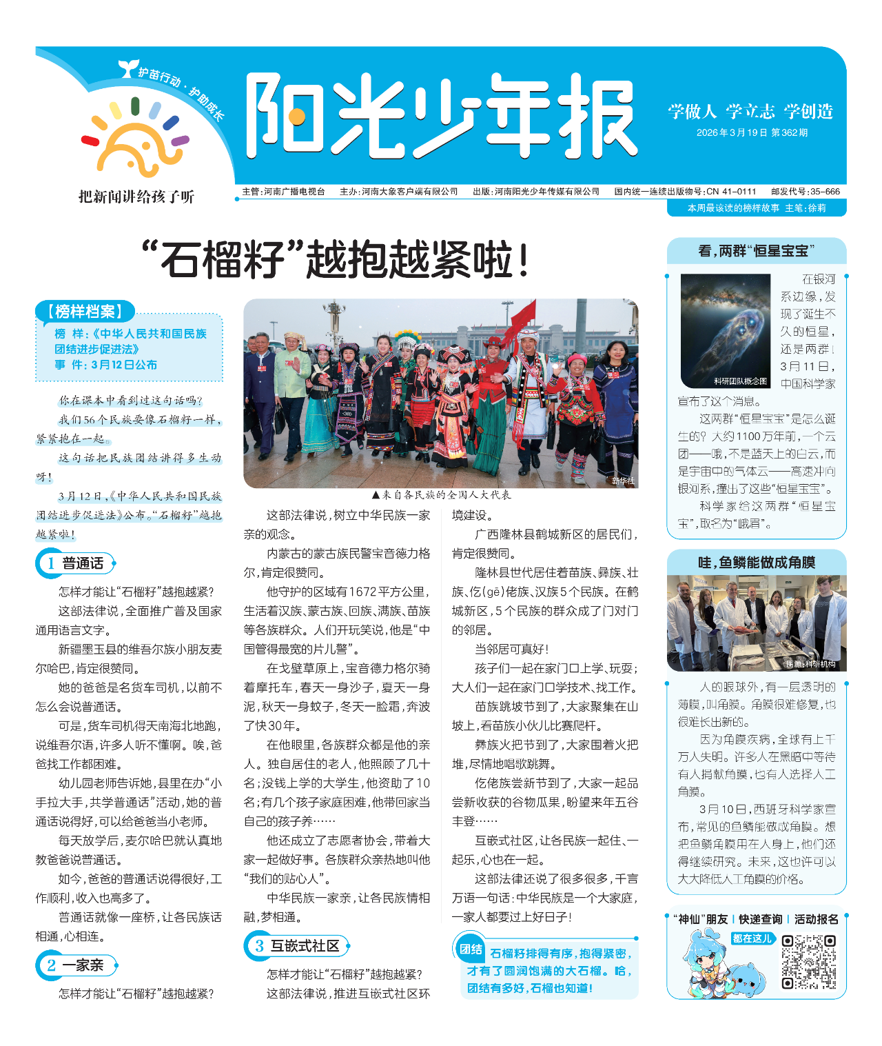 怎么讲?《阳光少年报》用孩子们听得懂的语言,把“石榴籽”紧紧抱在一起的道理,讲得生动又温暖。